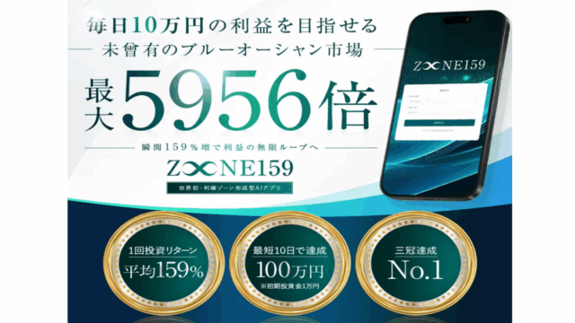 ミナトの考察 ZONE159(ゾーン159)は投資詐欺?安森一貴の評判と口コミ 2025年9月18日 minato ミナトの秘密投資ブログ みなさん、こんにちは! 近年、AIやフィンテックを活用した“次世代投資”を謳う案件が増えています。 その中でも「ZONE159(ゾー …