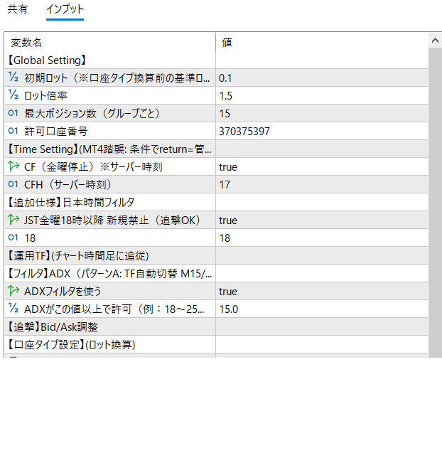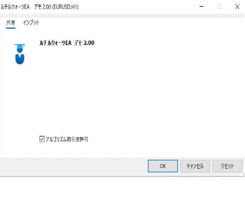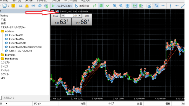 ここからは先ほど導入したEAの設定から稼働までの設定を行っていきます。
