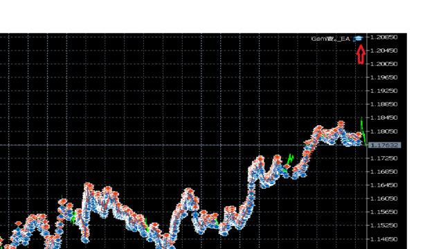 矢印のように、チャートの右上にEAの名前と、帽子を被った人が表示されたかと思います。