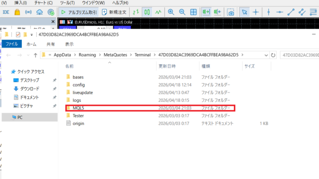 ②「データフォルダ」を開いたら「MQL5」というフォルダがあるのでクリック。